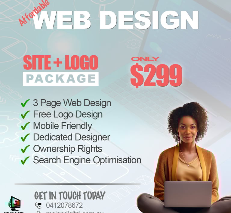 Get your tailored 3-page website plus logo creation for just $299 - the perfect option for small businesses.